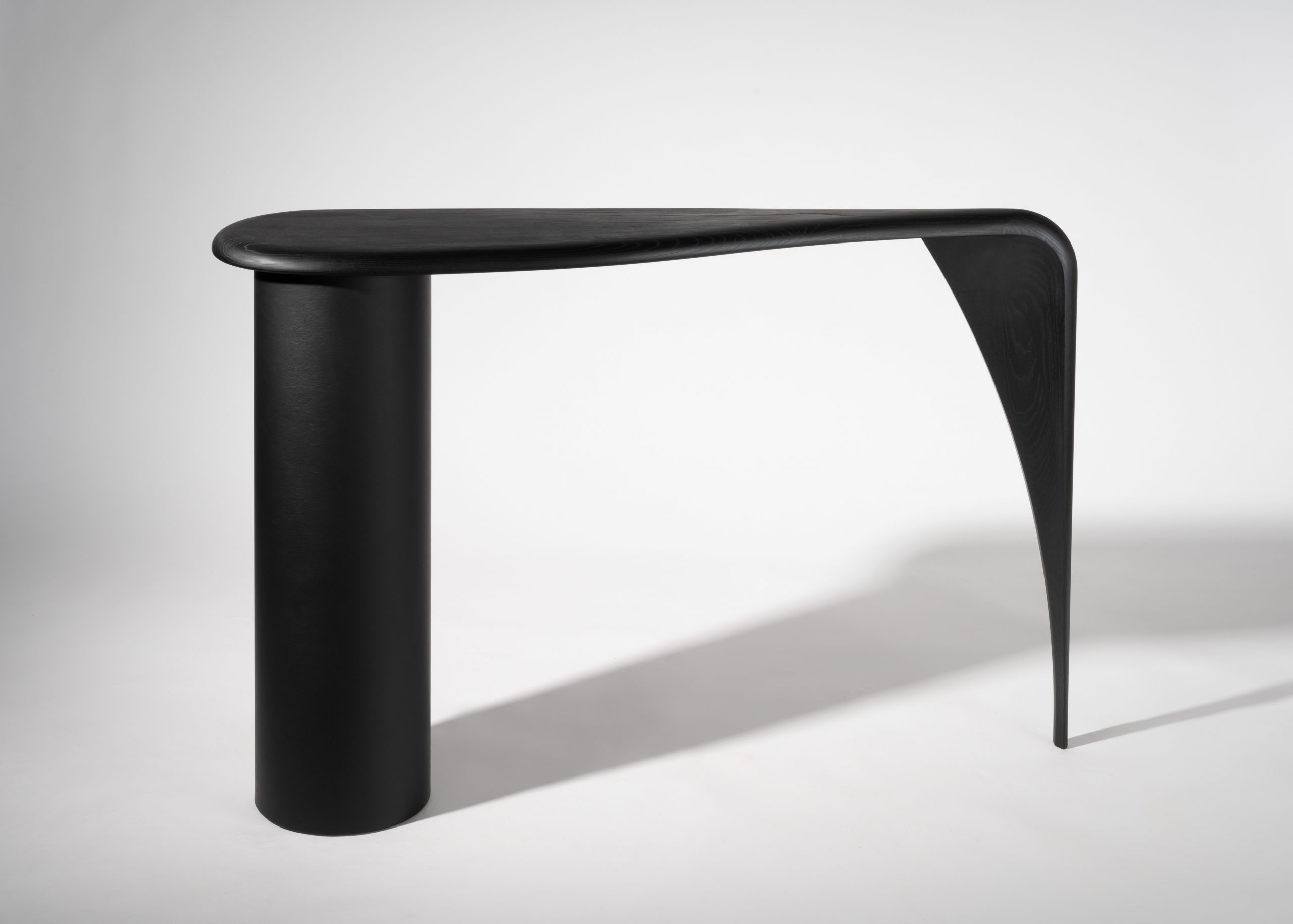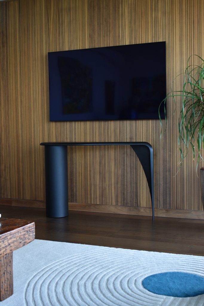 Made from two contrasting but complimentary forms and materials; a leather wrapped column and a sinuous flowing timber top and leg, the Wakio console is a deceptively simple design that is uncompromisingly contemporary.